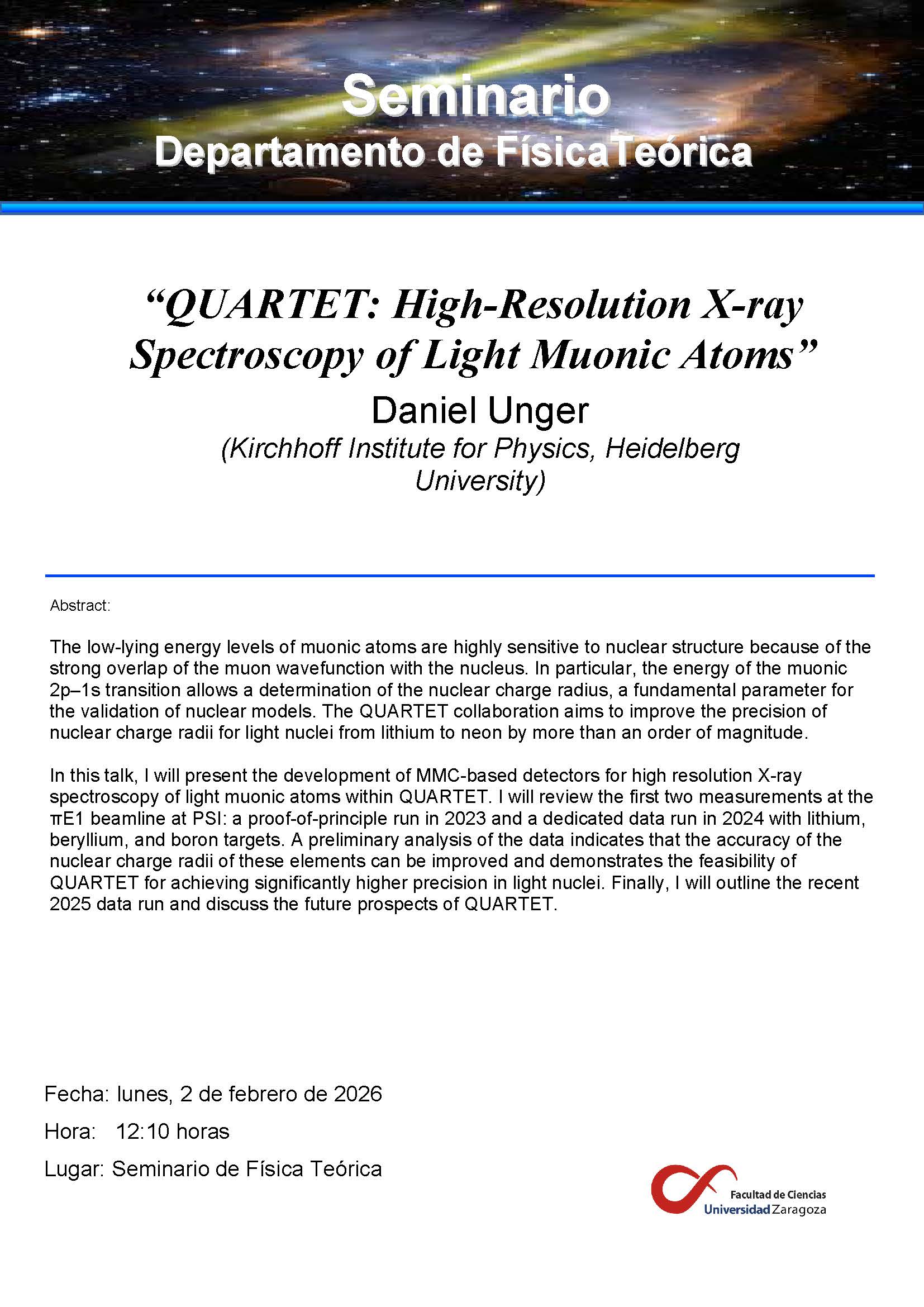 Seminario de Daniel Unger (Kirchhoff Institute for Physics, Heidelberg University)
